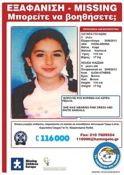 ฮฯฯ ฯฮทฮฝ ฮ ฮฑฯฮฑฯฮบฮตฯ ฮฎ (30/8/13) ฮฑฮณฮฝฮฟฮตฮฏฯฮฑฮน ฮท ฯฯฯฮท ฯฮทฯ 5ฯฯฮฟฮฝฮทฯ ฮงฮฟฯฮฝฯฮฑ (ฮผฮนฮบฯฯ ฯฮฝฮฟฮผฮฑ) ฮฮฟฯ ฮฑฮถฮฌฮฝ (ฮตฯฯฮฝฯ ฮผฮฟ). ฮฮนฮฑ ฯฮฟ ฮปฯฮณฮฟ ฮฑฯ ฯฯ ฮญฯฮตฮน ฮตฮบฮดฮฟฮธฮตฮฏ ฮตฮนฮดฮฟฯฮฟฮฏฮทฯฮท Amber Alert. ฮ 5ฯฯฮฟฮฝฮท ฮตฮพฮฑฯฮฑฮฝฮฏฯฯฮทฮบฮต ฮฑฯฯ ฯฮฟ ฮฮปฮนฮฟฮฝ ฯฯฮทฮฝ ฮฮธฮฎฮฝฮฑ.