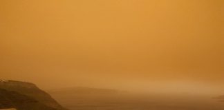 Με κιτρινωπό “πέπλο” η Σαντορίνη – Φωτογραφίες