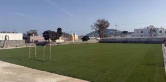 Δήμος Θήρας: Τοποθέτηση χλοοτάπητα στο γήπεδο ποδοσφαίρου του Γυμνασίου Φηρών