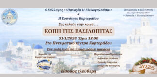Το Σάββατο 31/1 η κοπή βασιλόπιτας στον Καρτεράδο