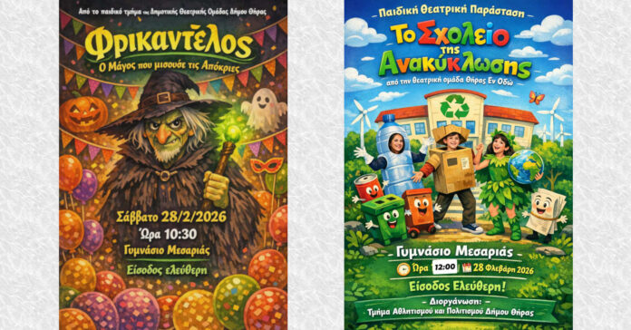 Σαντορίνη: Δύο θεατρικές παραστάσεις για μικρούς και μεγάλους το Σάββατο 28/2