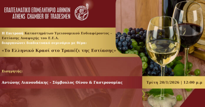 Διαδικτυακό σεμινάριο για το ελληνικό κρασί στο τραπέζι της εστίασης