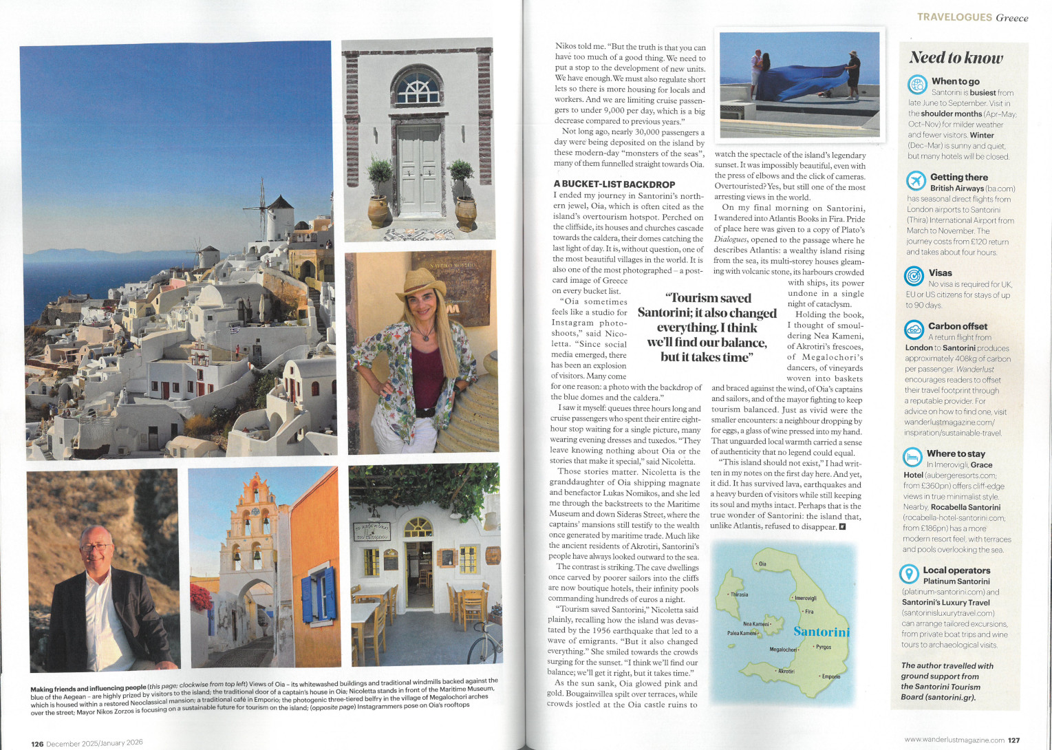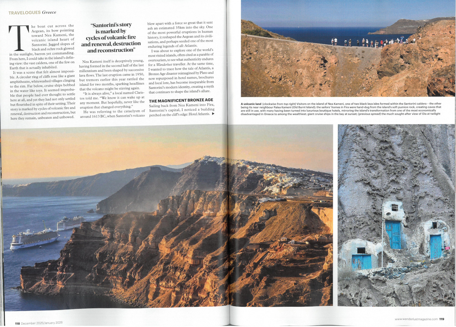 Πολυσέλιδο αφιέρωμα στη Σαντορίνη περιλαμβάνει το μακροβιότερο και κορυφαίο ταξιδιωτικό περιοδικό της Μ. Βρετανίας “Wanderlust Magazine”, στο τεύχος Δεκεμβρίου/Ιανουαρίου, το μεγαλύτερο τεύχος της χρονιάς. Το περιοδικό συγκαταλέγεται στα τρία σημαντικότερα ταξιδιωτικά μέσα σε ΗΠΑ και Καναδά, με μακρόχρονη επιρροή στην προώθηση αυθεντικών ταξιδιωτικών εμπειριών.