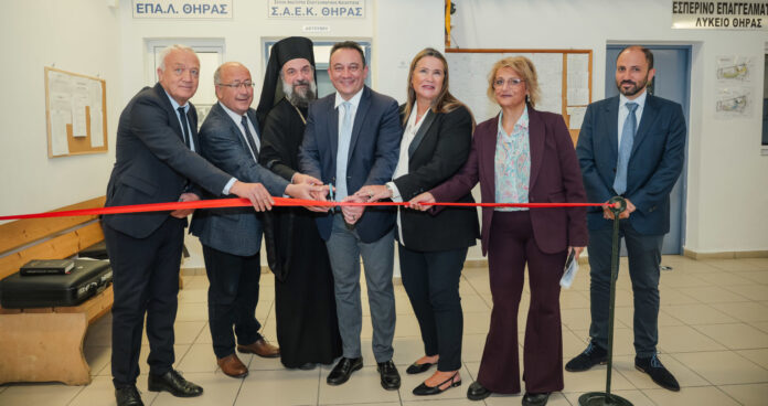 Έχοντας διανύσει τους πρώτους μήνες λειτουργίας της, η Σχολή Ανώτερης Επαγγελματικής Κατάρτισης (ΣΑΕΚ) Θήρας εγκαινιάστηκε επίσημα το απόγευμα της Δευτέρας 9/2 από τον Υφυπουργό Παιδείας Κώστα Βλάση, παρουσία του Βουλευτή Κυκλάδων Μάρκου Καφούρου, της Προέδρου του Ιδρύματος Νεολαίας και Διά Βίου Μάθησης (ΙΝΕΔΙΒΙΜ) Άννας Ροκοφύλλου, της Δημοτικής Αρχής, εκπαιδευτικών, σπουδαστών και πολιτών.