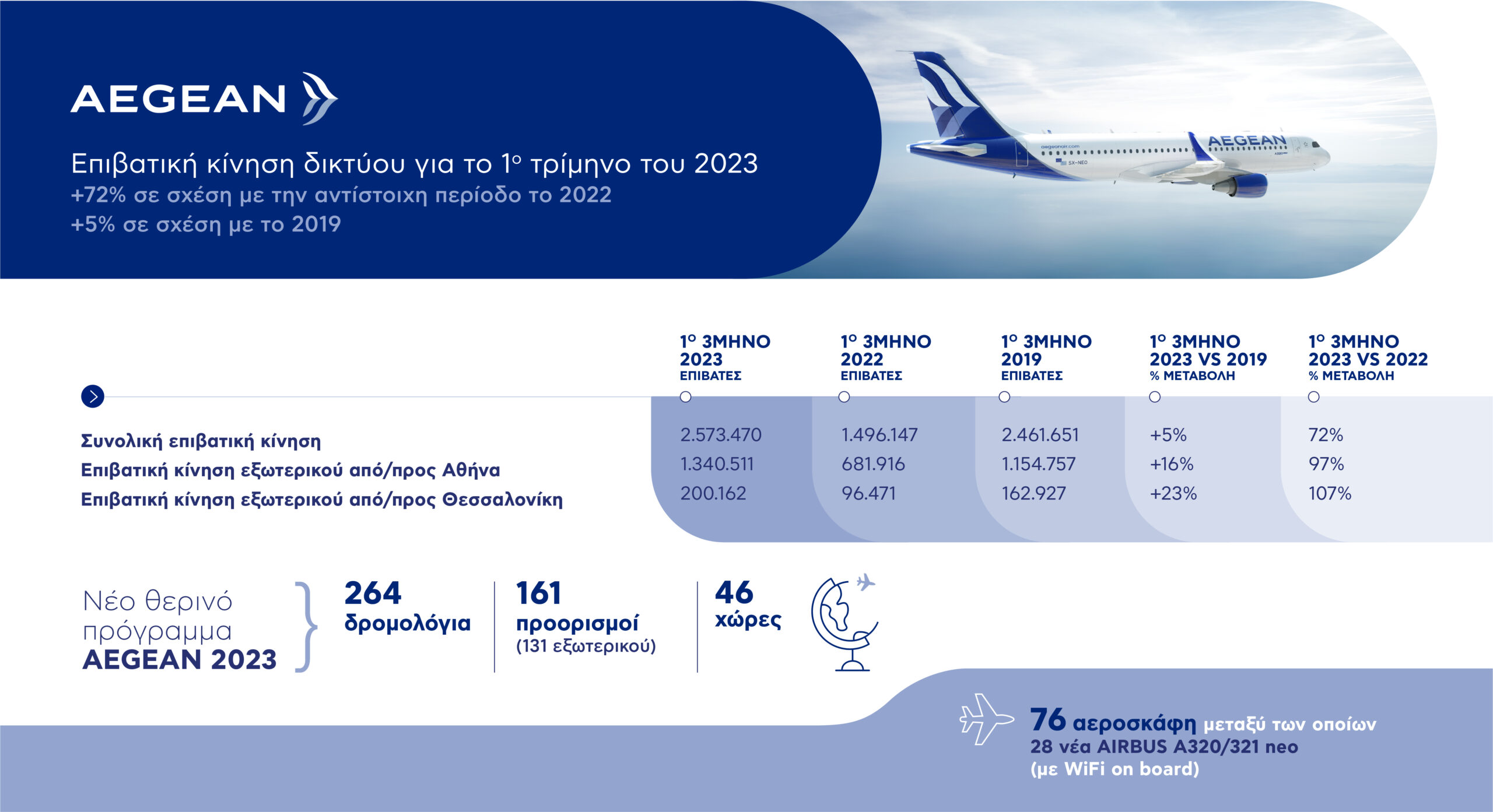 ฮฮต ฯฮท ฯฯ ฮฝฮฟฮปฮนฮบฮฎ ฮตฯฮนฮฒฮฑฯฮนฮบฮฎ ฮบฮฏฮฝฮทฯฮท ฯฮทฯ Aegean ฮณฮนฮฑ ฯฮฟ ฮฑ’ ฯฯฮฏฮผฮทฮฝฮฟ ฯฮฟฯ ฮญฯฮฟฯ ฯ ฮฑฯ ฮพฮทฮผฮญฮฝฮท ฮบฮฑฯฮฌ 72% ฮฑฯฯ ฯฮฟ 2022 (2,6 ฮตฮบฮฑฯ. ฮตฯฮนฮฒฮฌฯฮตฯ) ฮฌฮปฮปฮฑ ฮบฮฑฮน ฮณฮนฮฑ ฯฯฯฯฮท ฯฮฟฯฮฌ ฮฝฮฑ ฮพฮตฯฮตฯฮฝฮฌ ฯฮทฮฝ ฮฑฮฝฯฮฏฯฯฮฟฮนฯฮท ฯฮฟฯ 2019 (+5% ฮฑฯฮพฮทฯฮท), ฮบฮฑฮน ฯฮทฮฝ ฮตฯฮนฮฒฮฑฯฮนฮบฮฎ ฮบฮฏฮฝฮทฯฮท ฮตฮพฯฯฮตฯฮนฮบฮฟฯ ฮฑฯฯ ฯฮฑ ฮดฯ ฮฟ ฮผฮตฮณฮฑฮปฯฯฮตฯฮฑ ฮฑฮตฯฮฟฮดฯฯฮผฮนฮฑ ฯฮทฯ ฯฯฯฮฑฯ (ฮฮธฮฎฮฝฮฑ, ฮฮตฯฯฮฑฮปฮฟฮฝฮฏฮบฮท) ฮฝฮฑ ฮบฮฑฯฮฑฮณฯฮฌฯฮตฮน ฯฯฮตฮดฯฮฝ ฮดฮนฯฮปฮฑฯฮนฮฑฯฮผฯ ฮฑฯฯ ฯฮญฯฯ ฯฮน (+98%) ฮบฮฑฮน ฯฮทฮผฮฑฮฝฯฮนฮบฮฎ ฮฑฯฮพฮทฯฮท +17% ฮฑฯฯ ฯฮฟ 2019, ฮฟฮปฮฟฮบฮปฮทฯฯฮธฮทฮบฮต ฮท ฯฮตฮนฮผฮตฯฮนฮฝฮฎ ฯฮตฯฮฏฮฟฮดฮฟฯ, ฮฑฮฝฯฮนฮบฮฑฯฮฟฯฯฯฮฏฮถฮฟฮฝฯฮฑฯ ฯฮทฮฝ ฮตฯฮญฮฝฮดฯ ฯฮท ฯฮทฯ ฮตฯฮฑฮนฯฮตฮฏฮฑฯ ฯฯฮฟ ฯฮนฮฟ ฮฑฮดฯฮฝฮฑฮผฮฟ ฯฯฮฏฮผฮทฮฝฮฟ ฯฮฟฯ ฮญฯฮฟฯ ฯ, ฮฑฮปฮปฮฌ ฮบฮฑฮน ฯฮนฯ ฮธฮตฯฮนฮบฮญฯ ฯฯฮฟฮฟฯฯฮนฮบฮญฯ ฮณฮนฮฑ ฯฮท ฮถฮฎฯฮทฯฮท ฯฯฮฟฯ ฯฮท ฯฯฯฮฑ, ฯฯฮนฮฝ ฮฑฮบฯฮผฮท ฮฑฯฯ ฯฮฟ ฮพฮตฮบฮฏฮฝฮทฮผฮฑ ฯฮทฯ ฮบฯฯฮนฮฑฯ ฯฮฟฯ ฯฮนฯฯฮนฮบฮฎฯ ฯฮตฯฮนฯฮดฮฟฯ .
