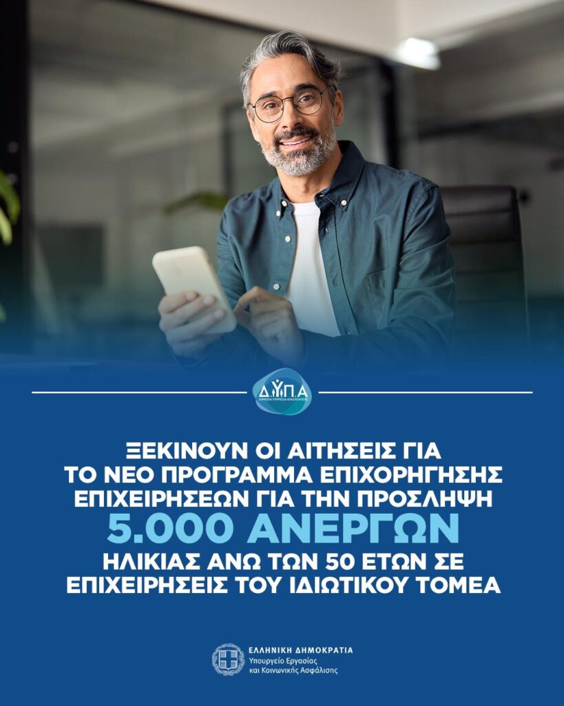 ฮฮตฮบฮฏฮฝฮทฯฮต ฯฮฎฮผฮตฯฮฑ, ฮคฮตฯฮฌฯฯฮท 1 ฮฮบฯฯฮฒฯฮฏฮฟฯ 2025, ฮท ฯ ฯฮฟฮฒฮฟฮปฮฎ ฮฑฮนฯฮฎฯฮตฯฮฝ ฮณฮนฮฑ ฯฮฟ ฮฝฮญฮฟ ฯฯฯฮณฯฮฑฮผฮผฮฑ ฮตฯฮนฯฮฟฯฮฎฮณฮทฯฮทฯ ฮตฯฮนฯฮตฮนฯฮฎฯฮตฯฮฝ ฮณฮนฮฑ ฯฮทฮฝ ฯฯฯฯฮปฮทฯฮท 5.000 ฮฑฮฝฮญฯฮณฯฮฝ, ฮทฮปฮนฮบฮฏฮฑฯ ฮฌฮฝฯ ฯฯฮฝ 50 ฮตฯฯฮฝ, ฯฯฮฟฮฝ ฮนฮดฮนฯฯฮนฮบฯ ฯฮฟฮผฮญฮฑ, ฯฯฮผฯฯฮฝฮฑ ฮผฮต ฯฯฮตฯฮนฮบฮฎ ฮฑฮฝฮฑฮบฮฟฮฏฮฝฯฯฮท ฯฮทฯ ฮฮทฮผฯฯฮนฮฑฯ ฮฅฯฮทฯฮตฯฮฏฮฑฯ ฮฯฮฑฯฯฯฮปฮทฯฮทฯ (ฮฮฅฮ ฮ).ย ฮฃฯฯฯฮฟฯ ฯฮฟฯ ฯฯฮฟฮณฯฮฌฮผฮผฮฑฯฮฟฯ ฮตฮฏฮฝฮฑฮน ฮท ฮดฮทฮผฮนฮฟฯ ฯฮณฮฏฮฑ 5.000 ฮฝฮญฯฮฝ ฮธฮญฯฮตฯฮฝ ฯฮปฮฎฯฮฟฯ ฯ ฮฑฯฮฑฯฯฯฮปฮทฯฮทฯ ฮณฮนฮฑ ฮฌฯฮฟฮผฮฑ ฮฌฮฝฯ ฯฯฮฝ 50 ฮตฯฯฮฝ ฯฮต ฮตฯฮนฯฮตฮนฯฮฎฯฮตฮนฯ ฯฮฟฯ ฮฑฯฮบฮฟฯฮฝ ฯฮฑฮบฯฮนฮบฮฎ ฮฟฮนฮบฮฟฮฝฮฟฮผฮนฮบฮฎ ฮดฯฮฑฯฯฮทฯฮนฯฯฮทฯฮฑ.
