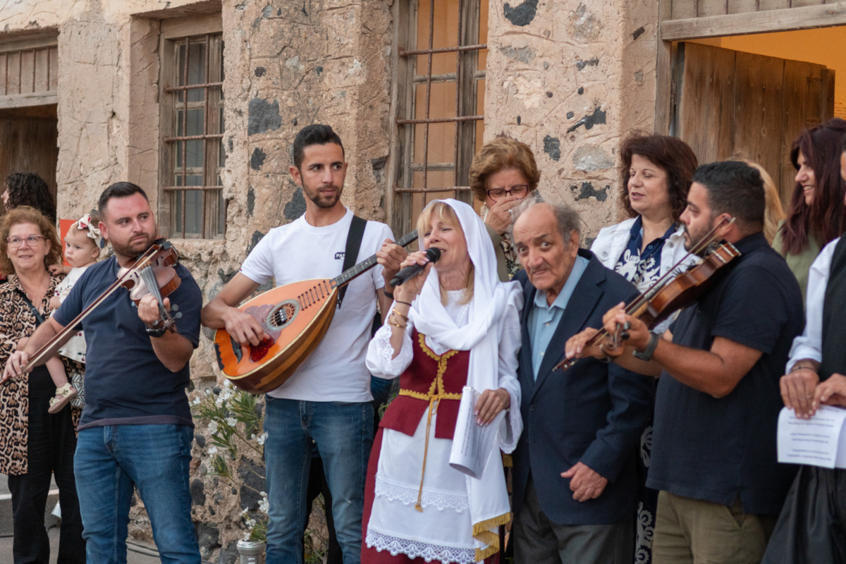 Μουσικοί και χορευτές με παραδοσιακές φορεσιές από συλλόγους του νησιού εμφανίστηκαν και παρουσίασαν τραγούδια και χορούς του νησιού προς τιμή του Μανώλη Λιγνού, δημιουργώντας μια ζωντανή γέφυρα ανάμεσα στην παράδοση και το σήμερα. Οι μουσικοί που συμμετείχαν ήταν ο Αργύρης Αρβανίτης (βιολί), ο Νίκος Μπάικας (βιολί) και ο Νίκος Βασσάλος (λαούτο), ενώ με την επιμέλεια της δασκάλας χορού Γιάννας Μαυρομμάτη συμμετείχαν χορευτές από τους παρακάτω συλλόγους του νησιού: