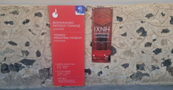 Η έκθεση, που διοργανώνεται από το Βιομηχανικό Μουσείο Τομάτας “Δ.Νομικός” και το Εργοστάσιο Τεχνών Σαντορίνης, υπό την αιγίδα του Δήμου Θήρας, υλοποιείται σε συνεργασία με το Λαογραφικό Μουσείο Σαντορίνης του Εμμ. Α. Λιγνού και τους ιδιώτες συλλέκτες: Αντώνη Βάλβη, Παρασκευά και Γεώργιο Καρρά, Βαγγέλη Χάλαρη, Αλέξανδρο Φύτρο και Στέργιο Μάσσα. Την έκθεση κοσμεί επίσης ένα μοναδικό ζωγραφικό έργο-αφιέρωμα στη βιομηχανική ιστορία της Σαντορίνης από το Χριστόφορο Ασιμή.
