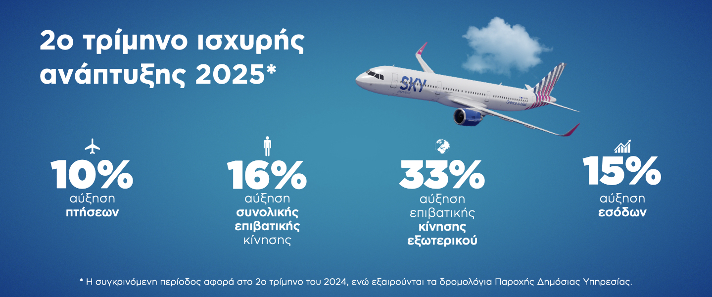ฮฃฯ ฮฝฮตฯฮฏฮถฮฟฮฝฯฮฑฯ ฯฮทฮฝ ฮฑฮฝฮฟฮดฮนฮบฮฎ ฯฮทฯ ฯฮฟฯฮตฮฏฮฑ, ฮท SKY express ฮบฮฑฯฮญฮณฯฮฑฯฮต ฮฑฮพฮนฮฟฯฮทฮผฮตฮฏฯฯฮตฯ ฮตฯฮนฮดฯฯฮตฮนฯ ฮบฮฑฮน ฮบฮฑฯฮฌ ฯฮฟ ฮดฮตฯฯฮตฯฮฟ ฯฯฮฏฮผฮทฮฝฮฟ ฯฮฟฯ 2025, ฮตฯฮนฮฒฮตฮฒฮฑฮนฯฮฝฮฟฮฝฯฮฑฯ ฯฮท ฮดฯ ฮฝฮฑฮผฮนฮบฮฎ ฯฮทฯ ฮฑฮฝฮฌฯฯฯ ฮพฮท ฯฯฮทฮฝ ฮฮปฮปฮฌฮดฮฑ ฮบฮฑฮน ฯฮฟ ฮตฮพฯฯฮตฯฮนฮบฯ.ย ฮ ฯฯ ฮฝฮฟฮปฮนฮบฮฎ ฮตฯฮนฮฒฮฑฯฮนฮบฮฎ ฮบฮฏฮฝฮทฯฮท ฯฮทฯ ฮตฯฮฑฮนฯฮตฮฏฮฑฯ ฯฮฑฯฮฟฯ ฯฮฏฮฑฯฮต ฮฌฮฝฮฟฮดฮฟ ฮบฮฑฯฮฌ 16% ฯฮต ฯฯฮณฮบฯฮนฯฮท ฮผฮต ฯฮฟ ฮฑฮฝฯฮฏฯฯฮฟฮนฯฮฟ ฮดฮนฮฌฯฯฮทฮผฮฑ ฯฮฟฯ 2024, ฮตฮฝฯ ฯฮฑ ฯฯ ฮฝฮฟฮปฮนฮบฮฌ ฮญฯฮฟฮดฮฑ ฮฑฯฯ ฯฯฮฎฯฮตฮนฯ ฮฑฯ ฮพฮฎฮธฮทฮบฮฑฮฝ ฮบฮฑฯฮฌ 15%.