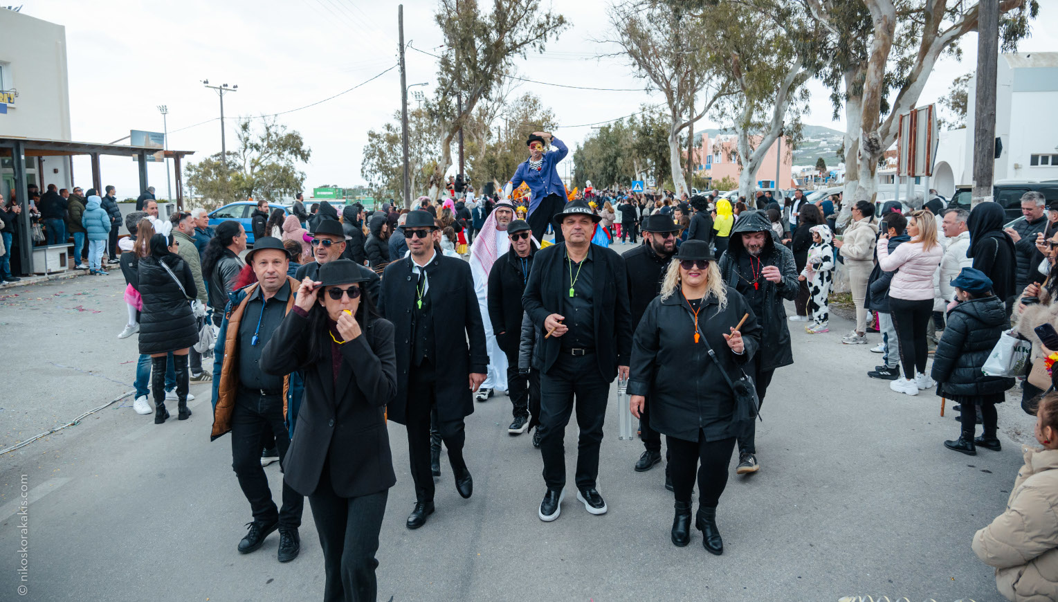 Η φετινή διοργάνωση περιλάμβανε μαθητική παρέλαση στον κεντρικό δρόμο Καρτεράδου-Φηρών, με τη συμμετοχή σχολείων από όλο το νησί, καθώς και των Συλλόγων Γονέων και Κηδεμόνων, οι οποίοι συνέβαλαν καθοριστικά στην προετοιμασία και την επιτυχία της εκδήλωσης. Μικροί και μεγάλοι καρναβαλιστές παρουσίασαν ευφάνταστες στολές και δημιουργικές συμμετοχές, προσφέροντας ένα ξεχωριστό θέαμα.