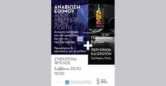 ฮ— ฮตฮบฮดฮฎฮปฯ‰ฯƒฮท ฮธฮฑ ฮพฮตฮบฮนฮฝฮฎฯƒฮตฮน ฮผฮต ฯ„ฮทฮฝ ฯ€ฮฑฯฮฟฯ…ฯƒฮฏฮฑฯƒฮท ฯ„ฮฟฯ… ฮฒฮนฮฒฮปฮฏฮฟฯ… “ฮ ฮตฯฮฏ ฮŸฮฏฮฝฯ‰ฮฝ ฮบฮฑฮน ฮ•ฯฯŽฯ„ฯ‰ฮฝ” ฯ„ฮทฯ‚ ฮœฮฑฯฮฏฮฑฯ‚ ฮคฮถฮฏฯ„ฮถฮท, ฯ€ฮฟฯ… ฮบฮญฯฮดฮนฯƒฮต ฯ„ฮฟ 1ฮฟ ฮฒฯฮฑฮฒฮตฮฏฮฟ ฯƒฯ„ฮฟฮฝ OIV (ฮ™ฮฝฯƒฯ„ฮนฯ„ฮฟฯฯ„ฮฟ ฮŸฮฏฮฝฮฟฯ… ฮบฮฑฮน ฮ‘ฮผฯ€ฮญฮปฮฟฯ… ฯ„ฮทฯ‚ ฮ“ฮฑฮปฮปฮฏฮฑฯ‚). ฮ“ฮนฮฑ ฯ„ฮฟ ฮฒฮนฮฒฮปฮฏฮฟ ฮธฮฑ ฮผฮนฮปฮฎฯƒฮฟฯ…ฮฝ ฮท ฮฟฮนฮฝฮฟฯ€ฮฟฮนฯŒฯ‚ ฮ™ฯ‰ฮฌฮฝฮฝฮฑ ฮ’ฮฑฮผฮฒฮฑฮบฮฟฯฯฮท, ฮฟ ฯƒฯ…ฮณฮณฯฮฑฯ†ฮญฮฑฯ‚ ฮžฮตฮฝฮฟฯ†ฯŽฮฝ ฮฆฯฯ„ฯฮฟฯ‚ ฮบฮฑฮน ฮท ฮฏฮดฮนฮฑ ฮท ฯƒฯ…ฮณฮณฯฮฑฯ†ฮญฮฑฯ‚ ฯ„ฮฟฯ… ฮฒฮนฮฒฮปฮฏฮฟฯ….