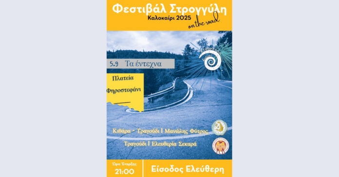 ฮคฮฟ “ฮฆฮตฯฯฮนฮฒฮฌฮป ฮฃฯฯฮฟฮณฮณฯฮปฮท on the road” ฯฯ ฮฝฮตฯฮฏฮถฮตฮน ฯฮฟ ฯฮฑฮพฮฏฮดฮน ฯฮฟฯ ฮผฮต ฮตฯฯฮผฮตฮฝฮฟ ฯฯฮฑฮธฮผฯ ฯฮฟ ฮฆฮทฯฮฟฯฯฮตฯฮฌฮฝฮน, ฯฯฮฟฯ ฯฮฟ ฮฒฯฮฌฮดฯ ฯฮทฯ ฮ ฮฑฯฮฑฯฮบฮตฯ ฮฎฯ 5/9 ฮธฮฑ ฯฮฑฯฮฟฯ ฯฮนฮฑฯฯฮตฮฏ ฮท ฮผฮฟฯ ฯฮนฮบฮฎ ฯฮฑฯฮฌฯฯฮฑฯฮท “ฮคฮฑ ฮญฮฝฯฮตฯฮฝฮฑ”.