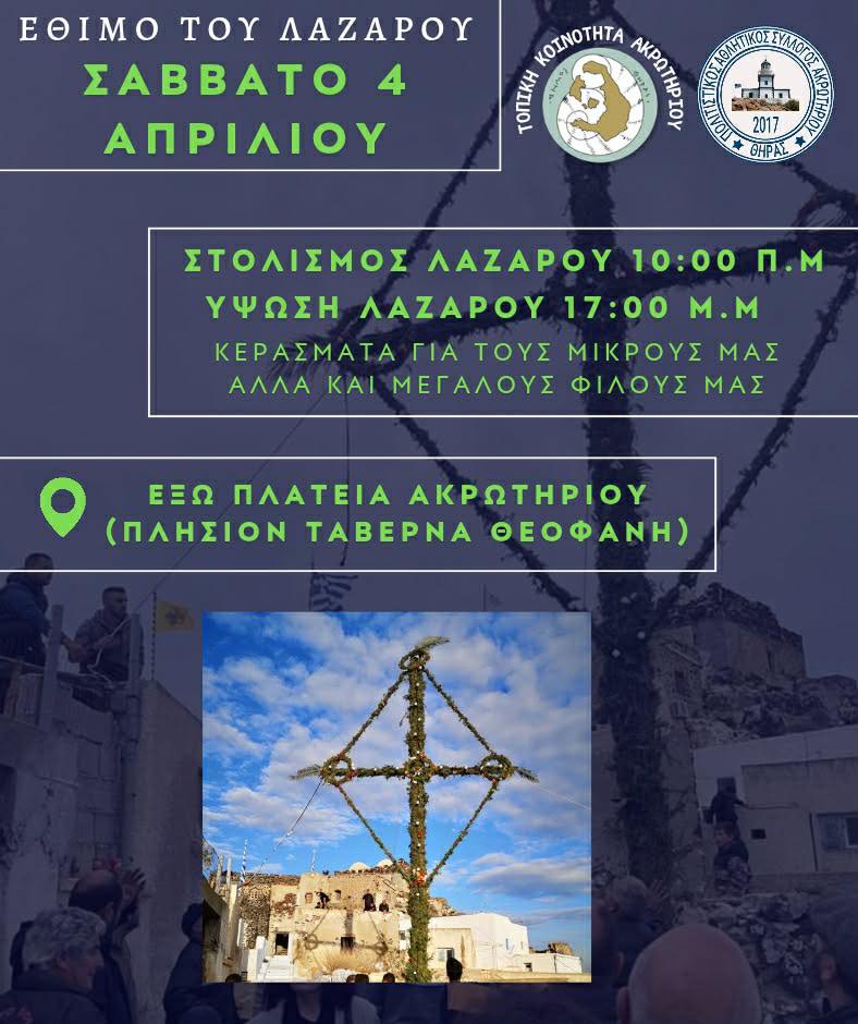 ฮฃฯ„ฮฟย ฮ‘ฮบฯฯ‰ฯ„ฮฎฯฮน, ฯƒฯ„ฮทฮฝ ฮญฮพฯ‰ ฯ€ฮปฮฑฯ„ฮตฮฏฮฑ ฯ„ฮฟฯ… ฯ‡ฯ‰ฯฮนฮฟฯ, ฯ„ฮฟ ฯƒฯ„ฯŒฮปฮนฯƒฮผฮฑ ฯ„ฮฟฯ… ฮ›ฮฑฮถฮฌฯฮฟฯ… ฮธฮฑ ฮพฮตฮบฮนฮฝฮฎฯƒฮตฮน ฯƒฯ„ฮนฯ‚ 10:00 ฯ„ฮฟ ฯ€ฯฯ‰ฮฏ ฯ„ฮฟฯ… ฮฃฮฑฮฒฮฒฮฌฯ„ฮฟฯ… 4/4 ฮบฮฑฮน ฯ„ฮฟ ฮฑฯ€ฯŒฮณฮตฯ…ฮผฮฑ ฯƒฯ„ฮนฯ‚ 18:00 ฮธฮฑ ฮณฮฏฮฝฮตฮน ฮท ฯฯˆฯ‰ฯƒฮฎ ฯ„ฮฟฯ….