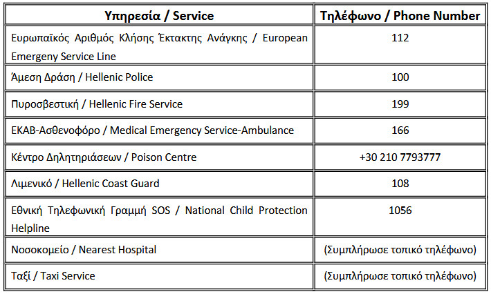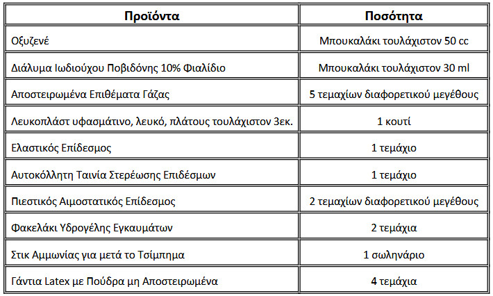 ฮคฮฟ ฯฮฑฯฮผฮฑฮบฮตฮฏฮฟ ฯฯฯฯฯฮฝ ฮฒฮฟฮทฮธฮตฮนฯฮฝ ฮธฮฑ ฯฯฮญฯฮตฮน ฮฝฮฑ ฯฮญฯฮตฮน ฮตฯฮนฮณฯฮฑฯฮฎ ฯฯฮฑ ฮตฮปฮปฮทฮฝฮนฮบฮฌ ฮบฮฑฮน ฮฑฮณฮณฮปฮนฮบฮฌ “ฮ ฮกฮฉฮคฮฮฃ ฮฮฮฮฮฮฮฮฃ / FIRST AID KIT” ฮบฮฑฮน ฯฮฟ ฯฮตฯฮนฮตฯฯฮผฮตฮฝฯ ฯฮฟฯ ฮธฮฑ ฯฮตฯฮนฮปฮฑฮผฮฒฮฌฮฝฮตฮน ฮบฮฑฯ’ ฮตฮปฮฌฯฮนฯฯฮฟ ฯฮฑ ฮบฮฌฯฯฮธฮน: