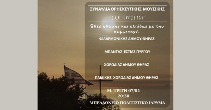 ฮŸ ฮ”ฮฎฮผฮฟฯ‚ ฮ˜ฮฎฯฮฑฯ‚ ฮญฯ‡ฮตฮน ฯ€ฯฮฟฮณฯฮฑฮผฮผฮฑฯ„ฮฏฯƒฮตฮน ฮณฮนฮฑ ฯ„ฮท ฮœ. ฮคฯฮฏฯ„ฮท 7/4, ฯŽฯฮฑ 20:30, ฯƒฯ„ฮฟ ฮœฯ€ฮตฮปฮปฯŽฮฝฮตฮนฮฟ ฮ ฮฟฮปฮนฯ„ฮนฯƒฯ„ฮนฮบฯŒ ฮšฮญฮฝฯ„ฯฮฟ, ฯƒฯ„ฮฑ ฮฆฮทฯฮฌ, ฮผฮนฮฑ ฯƒฯ…ฮฝฮฑฯ…ฮปฮฏฮฑ ฮธฯฮทฯƒฮบฮตฯ…ฯ„ฮนฮบฮฎฯ‚ ฮผฮฟฯ…ฯƒฮนฮบฮฎฯ‚ ฮผฮต ฯ„ฮท ฯƒฯ…ฮผฮผฮตฯ„ฮฟฯ‡ฮฎ ฯ„ฯ‰ฮฝ ฮผฮฟฯ…ฯƒฮนฮบฯŽฮฝ ฯƒฯ…ฮฝฯŒฮปฯ‰ฮฝ ฯ„ฮฟฯ… ฮฝฮทฯƒฮนฮฟฯ.